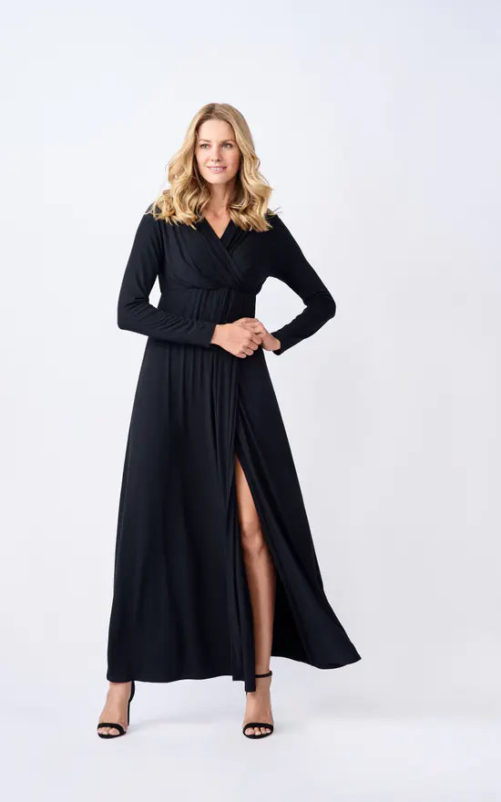 Make a show stopping entrance at your next event in the Ayda maternity and breastfeeding dress.