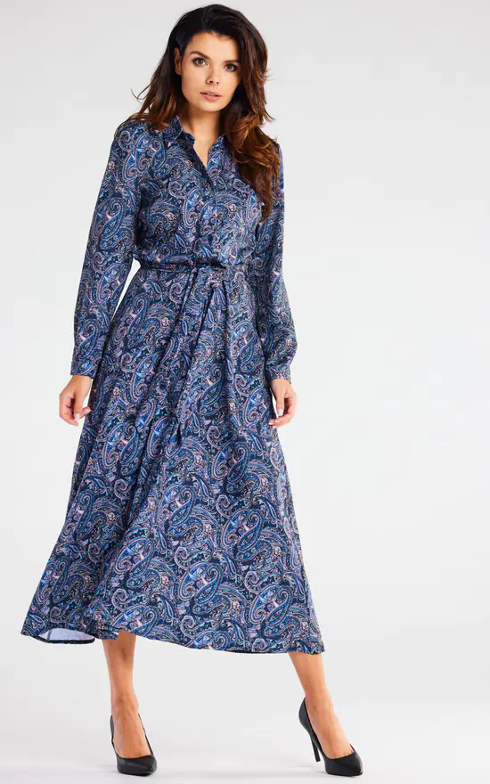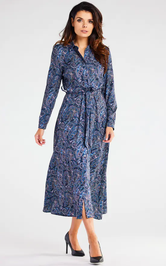 A belt of the same material is added to the dress to be tied at the waist.