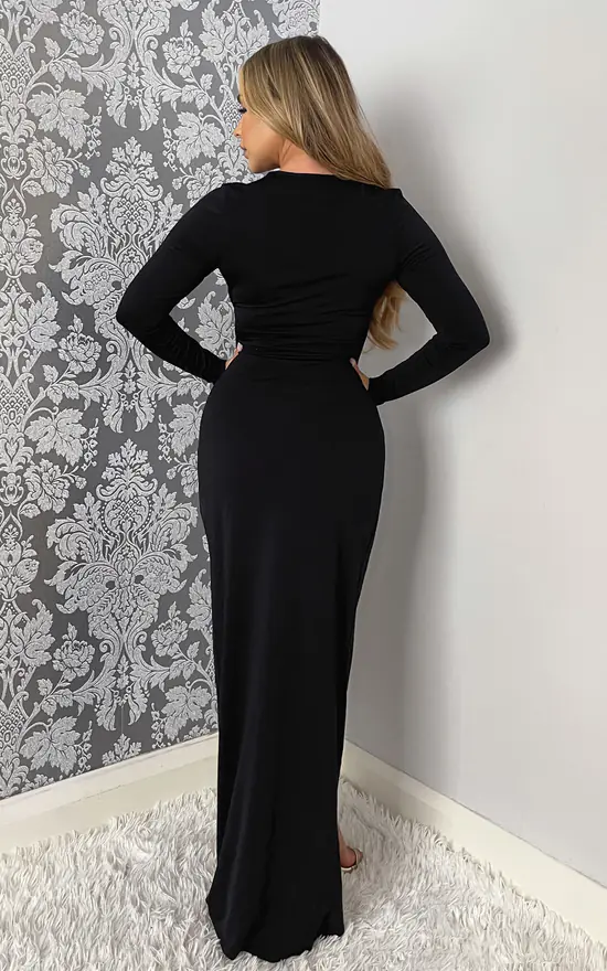 Our Black Long Sleeve Wrap Over Maxi Dress is right on trend this season! Featuring a v-neck wrap over top, long sleeves and a wrap over skirt with split. Pair with barely there heels and a some simple jewellery for a sophisticated look.