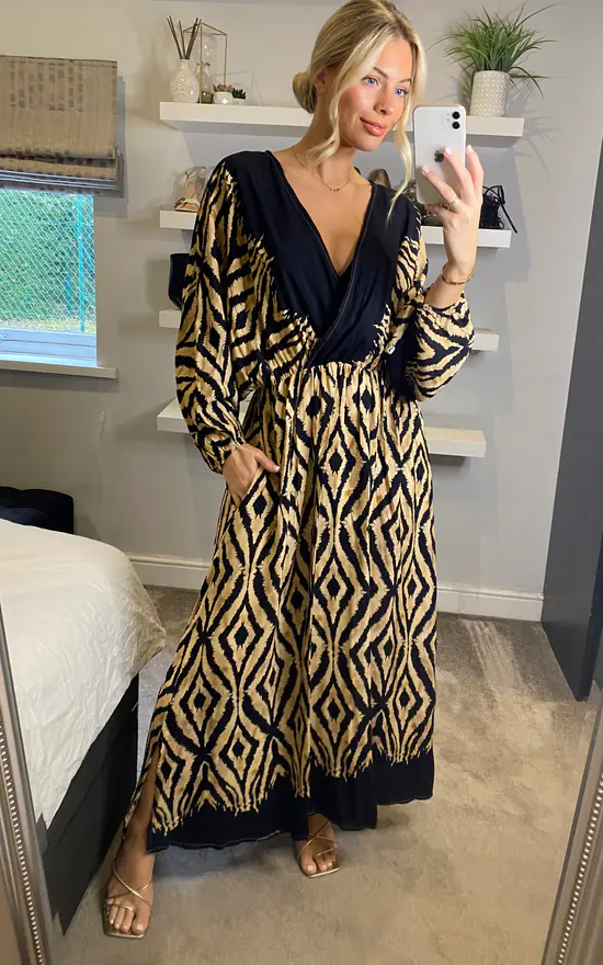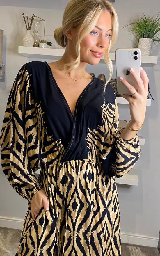The perfect dress doesn’t exist….oh wait ! Here it is – this has to be the most flattering dress we have. The V neckline gives a lovely look, along with the balloon sleeves. The material is so lovely that this can be worn to literally anywhere. It would look great with a biker jacket and trainers, changing into heels for the evening.