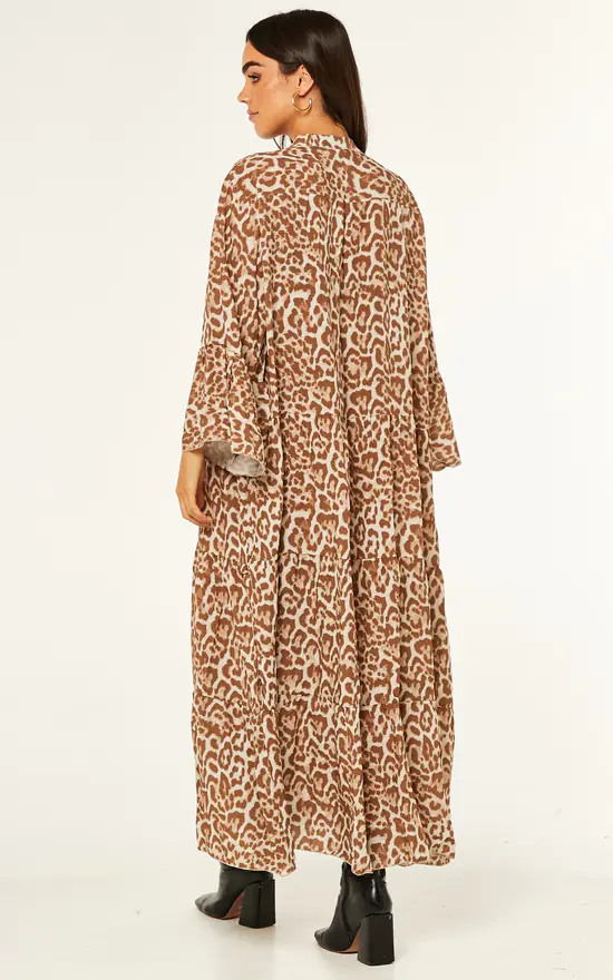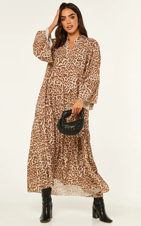 Exclusively by Blue Vanilla. Go for comfort with this timeless Millie Leopard Print Maxi Smock Dress In Camel which makes a great wardrobe staple. Endlessly versatile, this chic number looks great wherever you wear it.