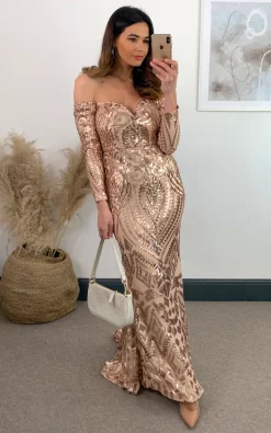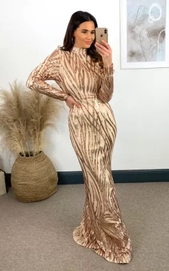 Best Sale π Nazz Collection Shine On Me Rose Gold Sequin Maxi π Dress With One Shoulder βοΈ