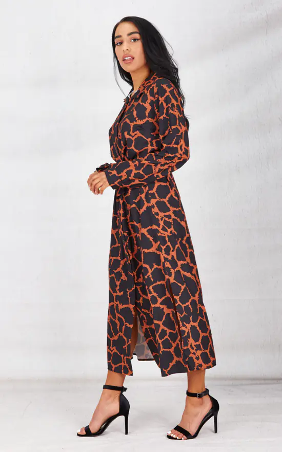 Our Black Print Belted Maxi Shirt Dress is is a must have for the season! Open front with button fastening, collared neck with belted detail. Soft to touch with long sleeves.