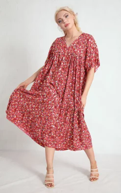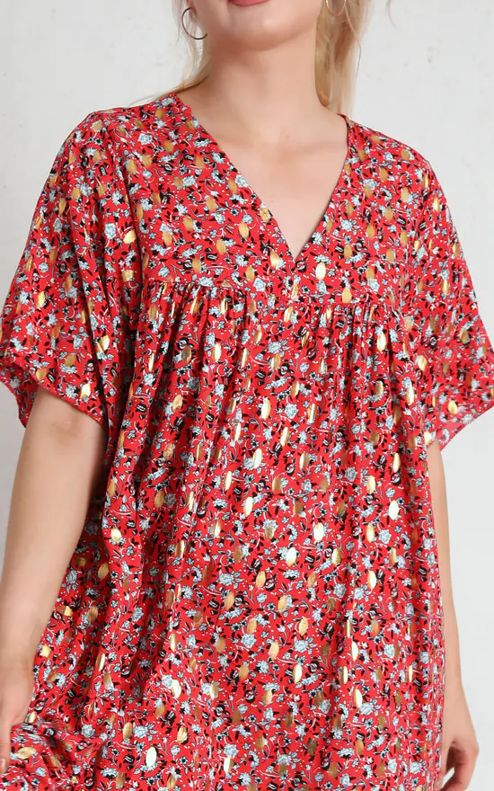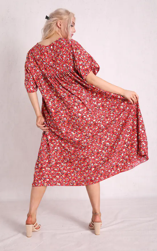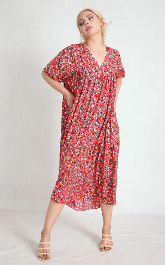 This Red Floral V Neck Tiered Dress is part of our latest dress collection! Featuring a thin lightweight material, short sleeve, v neck, tiered detail and finishing in a relaxed fit.