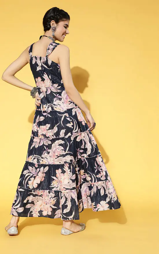 A relaxed maxi sillhoutte, perfect for casual occassions such as drinks with the girls or a barbecue! Vintage Floral print fit, flare dress. Keep it chic with this navy sleeveless dress. The versatile maxi that’s perfect for every occasion.