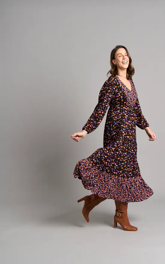 Fun, flirty and floaty: Yolke was made for the free-spirited. Cut from sustainable lightweight fabric, this maxi is ultra versatile and perfect for all occasions. The beautiful print, empire cut and swing silhouette work together to add to the effortless feel of the dress. Dress up with heels for your next party or dress down with boots for an effortless Autumn-Winter vibe.