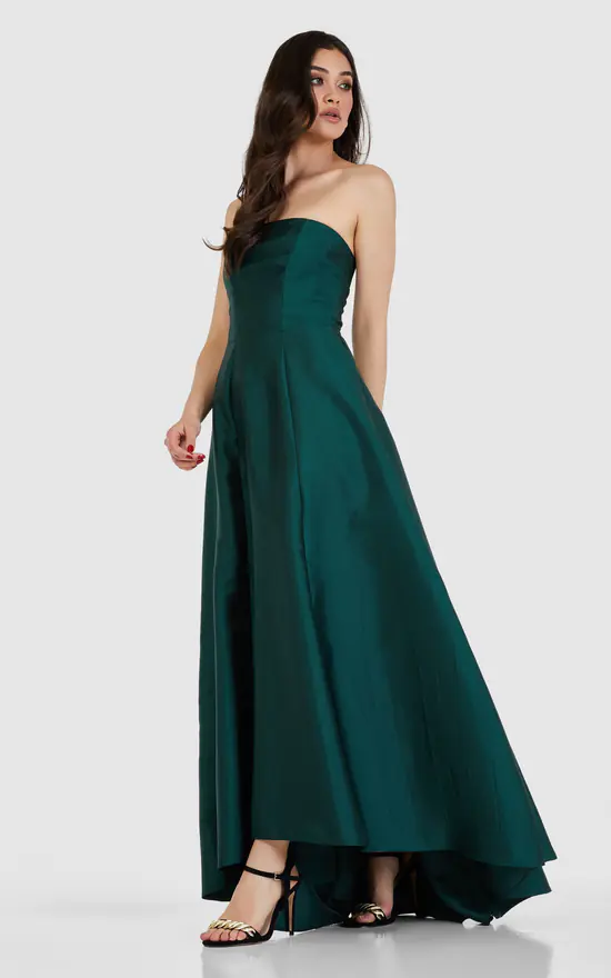 When the Invitation calls for formal eveningwear, this boned strapless Taffeta Dress in a beautiful colour may be the answer.