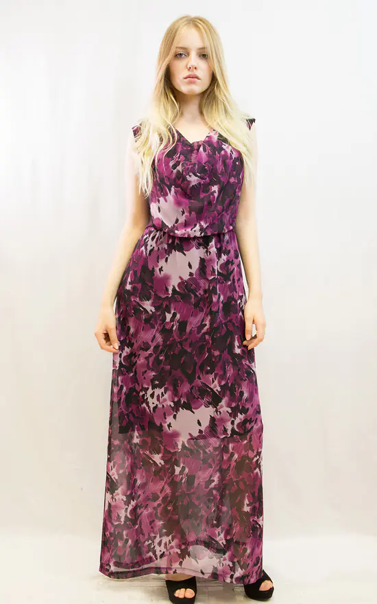 This purple chiffon maxi dress is light and breezy for those hot summer days.