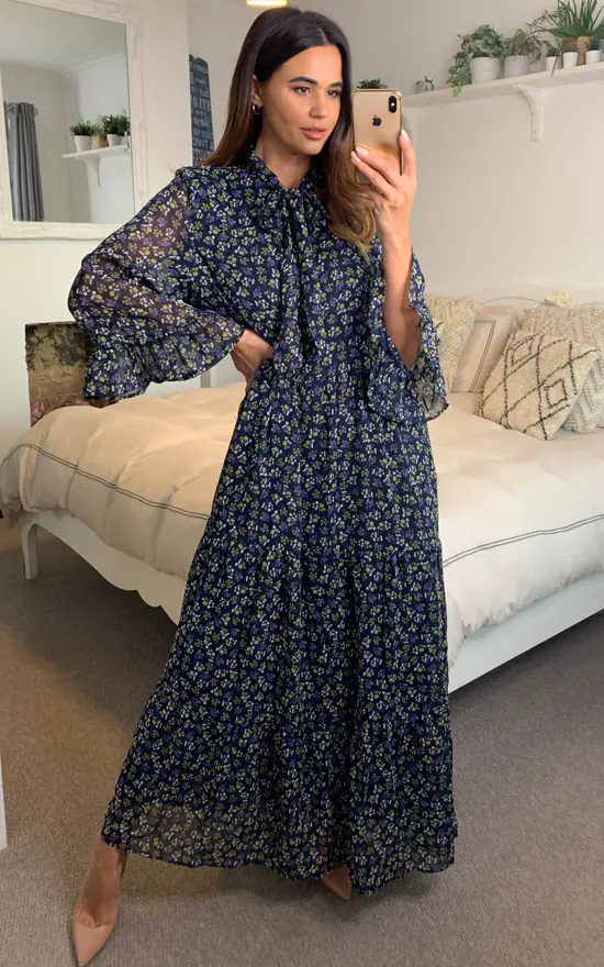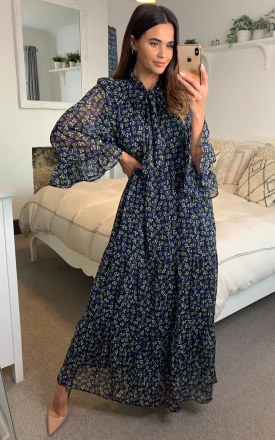 – Multi floral daisy print maxi dress