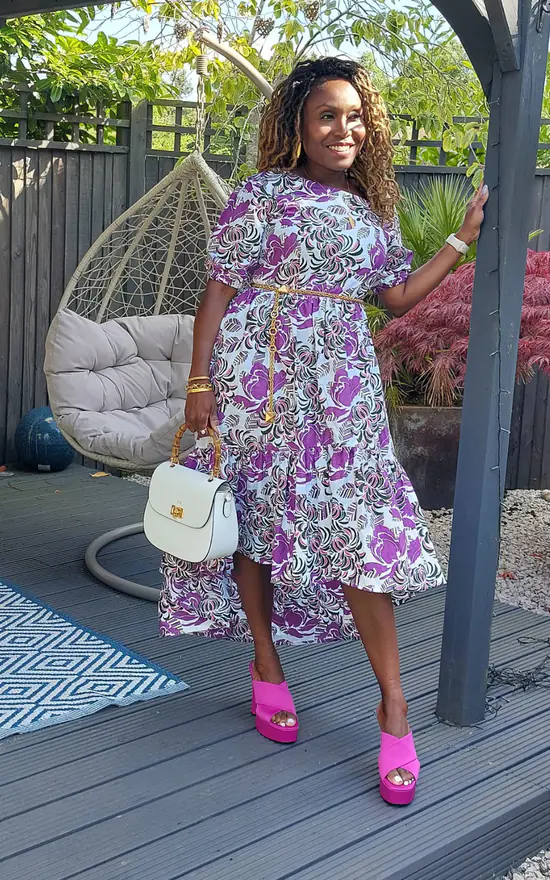 Bring your wardrobe to life with this maxi dress crafted in an asymmetric neckline and a high low hemline that rises at the front and dips at the back. The regular fit design features a bold floral print and tiered hem for a sophisticated finish. This dress will be there for you for sunny celebrations.
