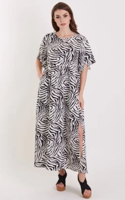 This is a staple wardrobe item with 2 hidden side pockets, side slit and cape sleeves.