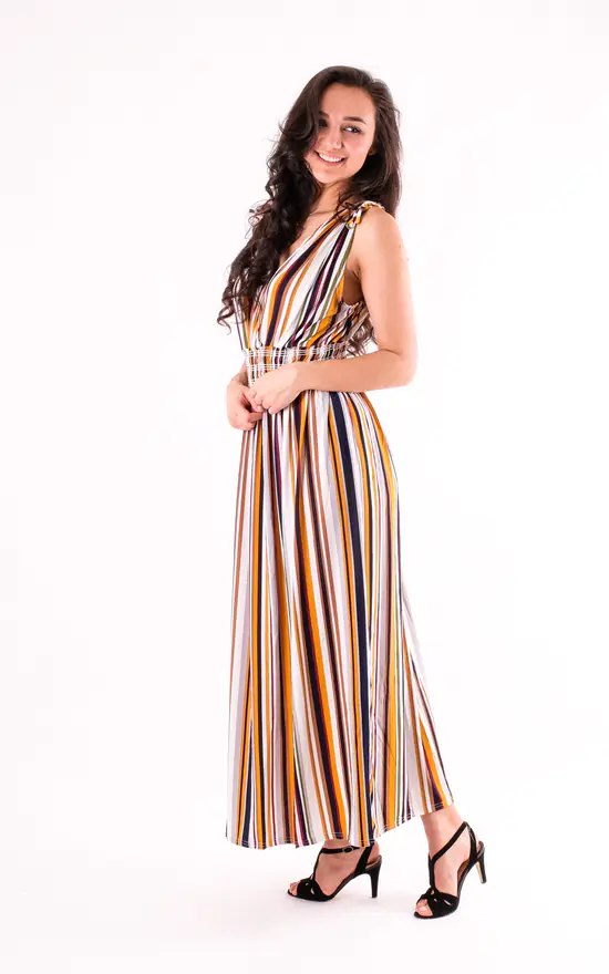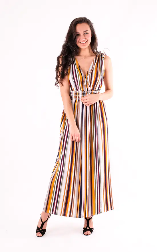 This gorgeous Pinstripe maxi dress with v neck, long sleeves and tiered detail is a great addition for this season. Add a leather jacket and pair of heels for a glam look or a pair of trainers for a casual look.