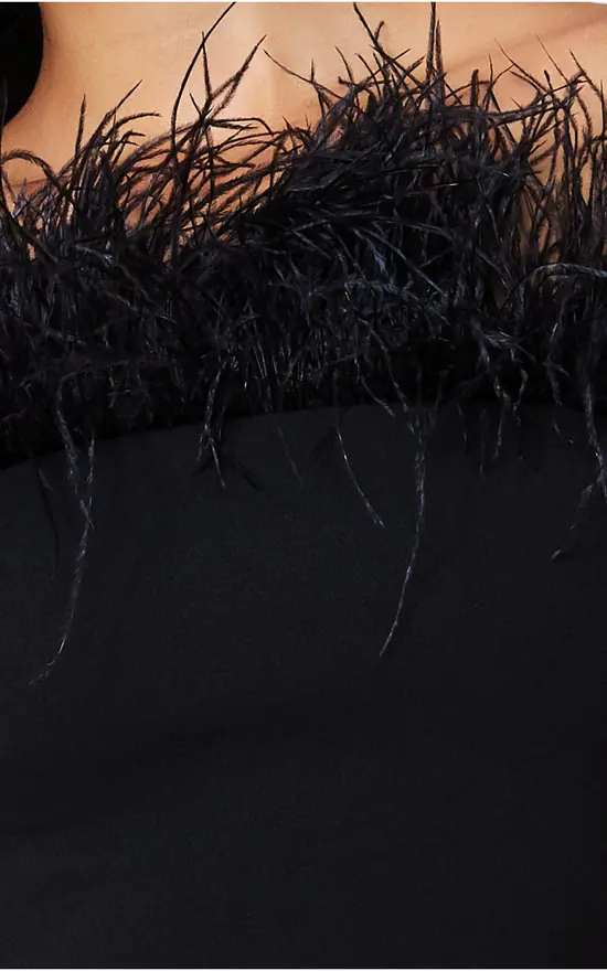 Feather Boobtube Maxi from Goddiva is just the thing you need to nail that cocktail party look in a style that’s all your own. It may be evening, but that doesn’t mean you can’t look sexy! This black maxi is perfect for every special occasion such as a wedding, prom or a night out. This feather boobtube maxi dress is sure to get you noticed and compliments from everyone around you. The fabric of this LBD maxi dress is super soft and stretchy with a bodycon fit style that hugs the body in all the right places making it extremely comfortable to wear. Team it with peep toes and a clutch to steal the spotlight at any event!