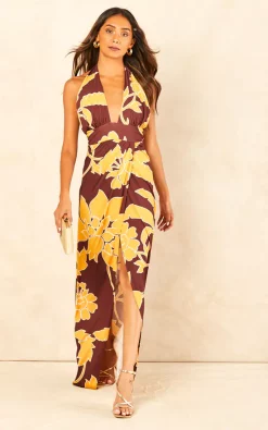 This brown printed maxi dress is the perfect outfit for your next lunch date. The halter neck, open back and relaxed fit will make you feel comfortable and confident. This charming summer dress is perfect for all casual occasions, from brunch with the girls to holidays with your lover. With its stunning design and light fabric, this maxi dress will make you feel comfortable, stylish and flatter your figure! It’s the perfect day-to-night outfit. It looks great with a pair of sandals or wedges and sunnies. So add to cart and live your best life in this stunner of a summer dress.