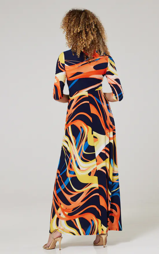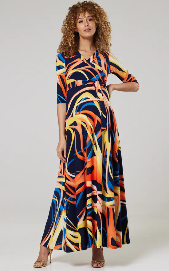 β Maternity nursing maxi dress in Navy with Orange, Yellow and Blue Stripes