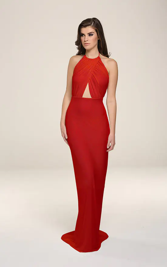 The Erin Maxi is a wrap over halter neck style with a cutout under the bust and crafted in our signature soft stretch fabric this dress has been designed with side ruching so you can ruch to desired length. Lined on the main body its flows into a small train (not lined as cut so can give a flowing lightweight train). Available in other colours and a midi length