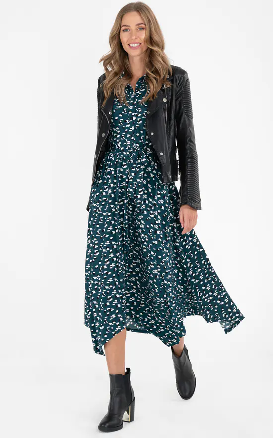 Exclusively by Jolie Moi. Fluid and swinging, this Jolie Moi shirt dress comes with an asymmetric hemline that brings more movement to the look. Crafted in a soft jersey fabric, the dress drapes elegantly and has ruched sleeve detailing.
