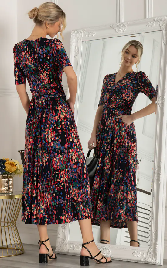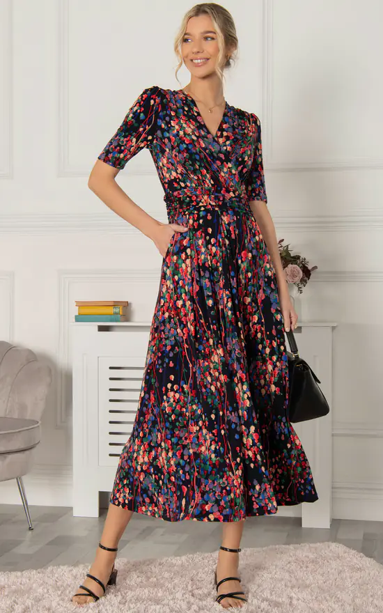 Designed from comfortably soft Jersey fabric in a flattering fit and flare silhouette, this Jolie Moi dress is printed with a vibrant multi-pattern that is sure to grant you a standout look. Designed with a boat neckline that serves to frame your collarbones, this dress features three-quarter-length sleeves and subtle pleating throughout the maxi-length skirt that emphasises the pieces fluid movement.