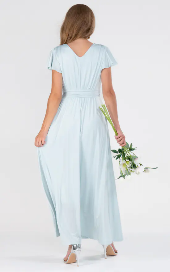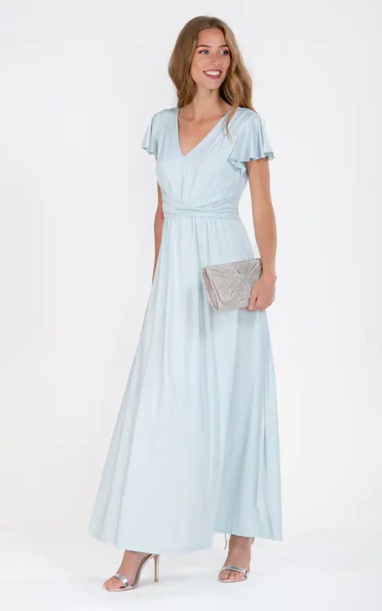Cut from lightweight super soft jersey fabric to exude a graceful fluidity, this design features a cinched waist for a defined silhouette and a long flared skirt skimming beautifully over the figure. Other style notes for this striking dress include flattering seaming’s on the bodice, flared cap sleeves and the twisted waistband which draws in your silhouette.