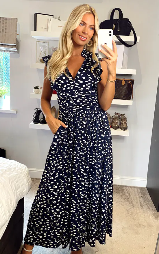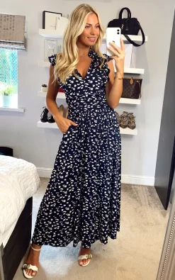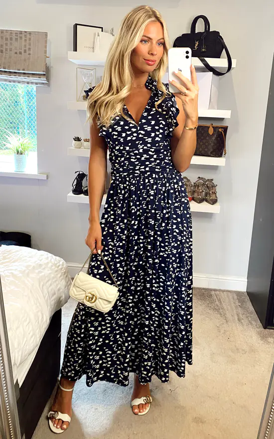 Exclusively by Jolie Moi. Given a romantic update, this dress from Jolie Moi will take you from season to season. Made from soft and stretchy jersey fabric in an elegant maxi silhouette, it features a V-neckline with a stand collar, an elasticated waist and frills at the shoulder. Dress down with trainers or up with block heels.