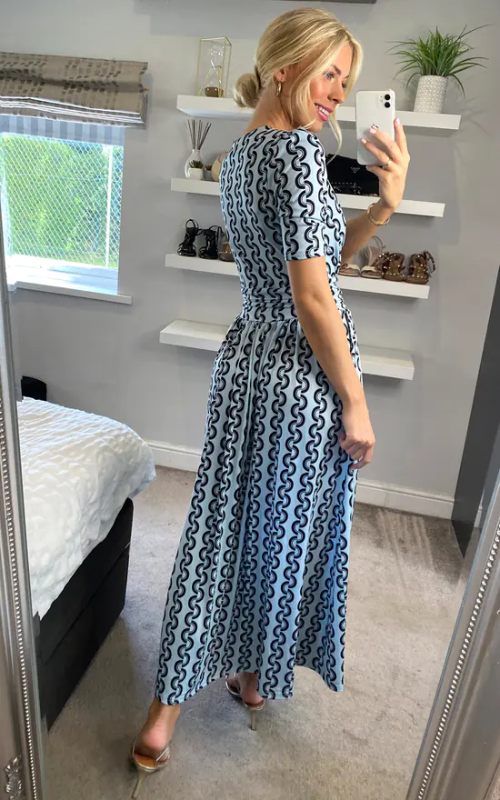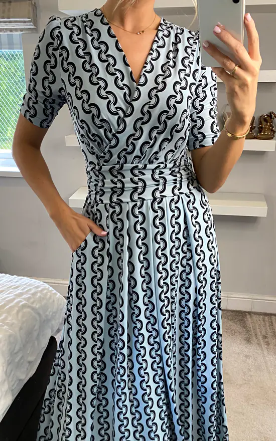 Graceful from top to bottom, this dress from Jolie Moi features a simple but striking polka dot print which makes it truly distinctive. Versatile with its elegant wrap over v-neckline and smart elbow length sleeves, it is completed with functional pockets and a ruched elasticated waistband which draws in your silhouette for a form-flattering fit. This piece pulls on with sandals for summer days in the sun