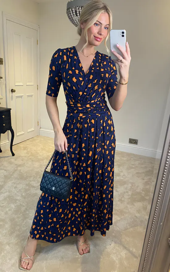 In a flattering fit-and-flare silhouette, this maxi dress by Jolie Moi is decorated with a wild animal print. With a wrap-over front and short sleeves, it is a care-free option for daytime dressing. The perfect addition to any wardrobe this season.