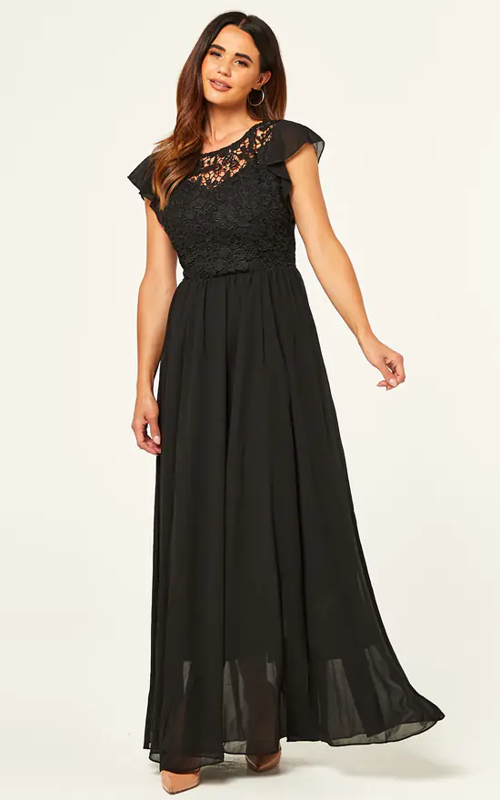 Make those special events unforgettable with this striking Jolie Moi dress. Cut to a flared full length and crafted from elegant crochet detail with frill cap sleeve. This piece is designed with a stunning chiffon maxi skirt over a full lining, while the floor-lengthened cut beautifully elongates your silhouette. It is completed with a self-tie belt enable you to showcase an elegant and sophisticated look.