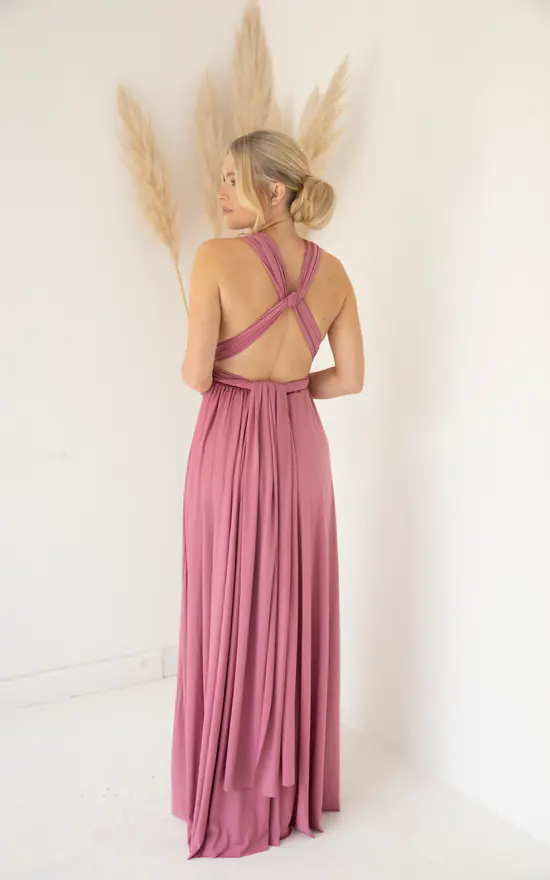 Our multiway gowns are the perfect occasion dress, particularly for bridesmaids. The dress can be styled in many ways and we can guarantee you will find a style to suit every shape and size. Our gowns are one size fits around the waist (size 6-18/20) The long length allows you to trim the gown for a more personalised fit. Our gowns come with a complimentary bandeau which is worn under the dress for more coverage and extra support. The dress can be worn without the bandeau for a backless effect- perfect for destination weddings. Our dresses are very ideal for maternity gowns as the dress will adapt to your body shape.