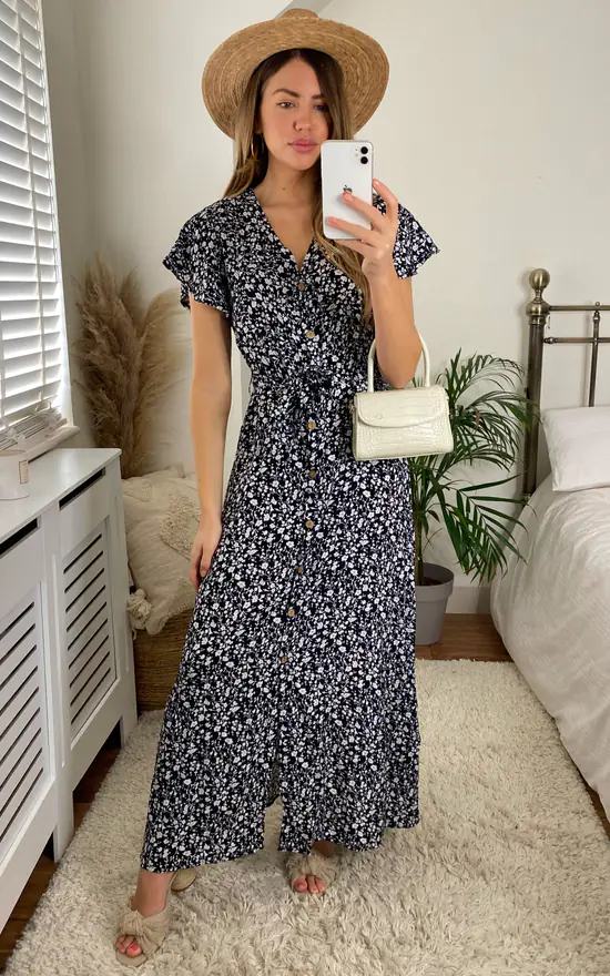 Coupon πŸ‘ KURT MULLER Belted Floral Maxi πŸ‘— Dress In Black πŸ‘