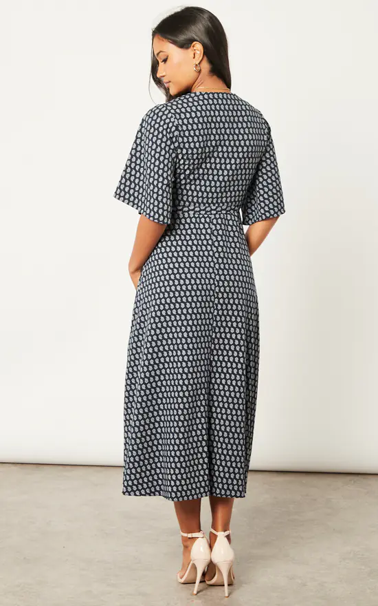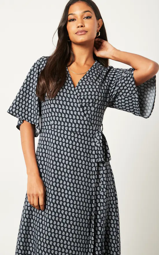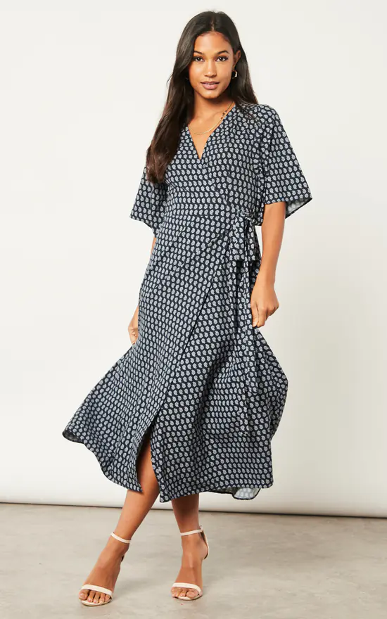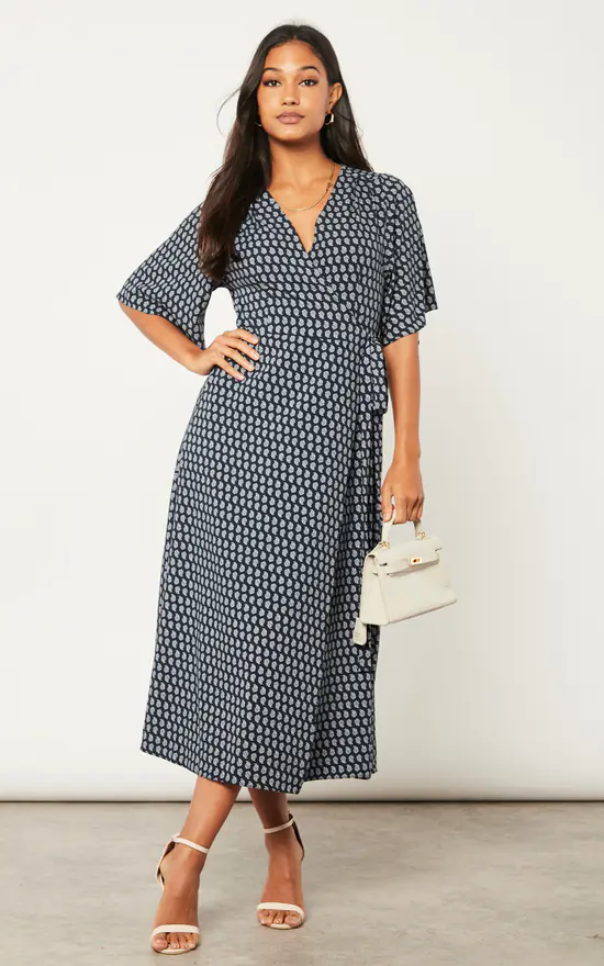 Coupon πŸ‘ Liquorish Navy Floral Midi Wrap πŸ‘— Dress With Kimono Sleeves ⭐