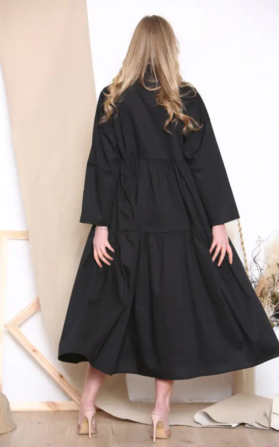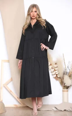 Long sleeve shirt maxi dress in black.
