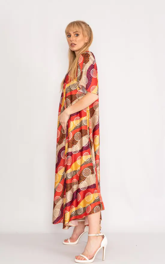 This patterned maxi dress with a V neck is perfect for your summer wardrobe, with short sleeves but a long length, this dress is brilliant for those summer evenings.