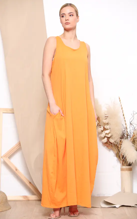 This strappy sleeve maxi dress is perfect for smarter occasions this spring. Made from comfortable cotton and with a loose fit, perfect for warm weather.