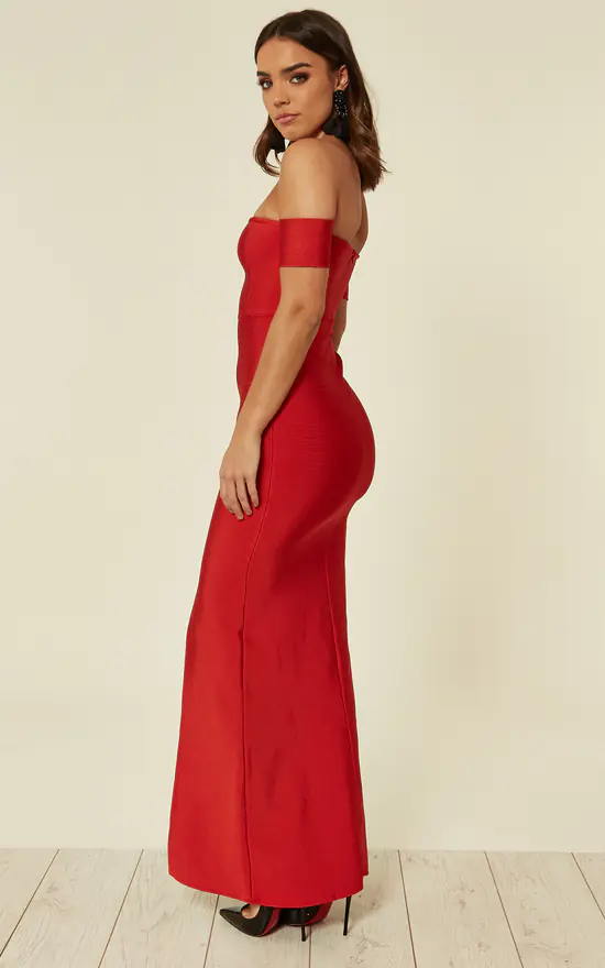 Looking stunning with off the shoulder block straps. The slit going up the centre front looking elegant yet sexy.