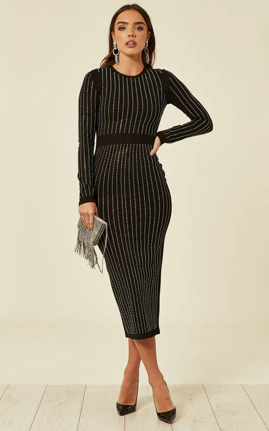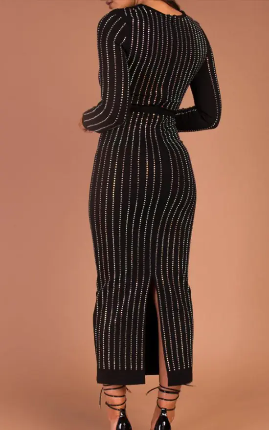 Winter hues and long sleeves set the tone for ‘Geena’. Made from our special heavy stretch bandage fabric, ‘Geena’ has a simple yet chic, sexy diamante silhouette. It features a jewel neck, long sleeves, underwire feature to the bust and a flattering maxi length cut.