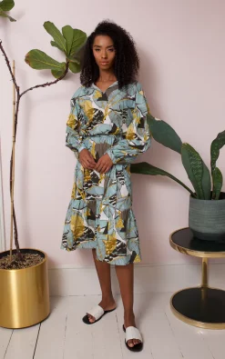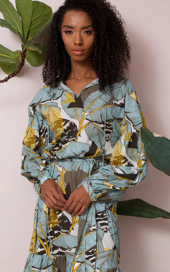 A maxi dress with long balloon sleeves, drop shoulders and a flattering tiered skirt. This perfect summer dress also features a on trend keyhole detail at the front. Generous fit for comfort.