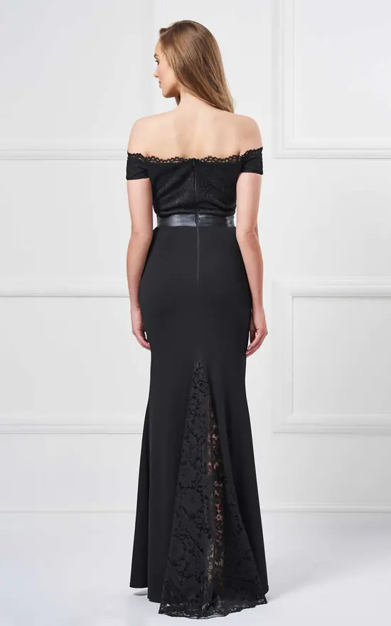 This elegant lace dress designed by Saint A is perfect for that special occasion. The bodycon fit and satin belt makes this evening gown unforgettable. The fitted fishtail design flatters the figure perfectly, making it your dream match for black tie events.
