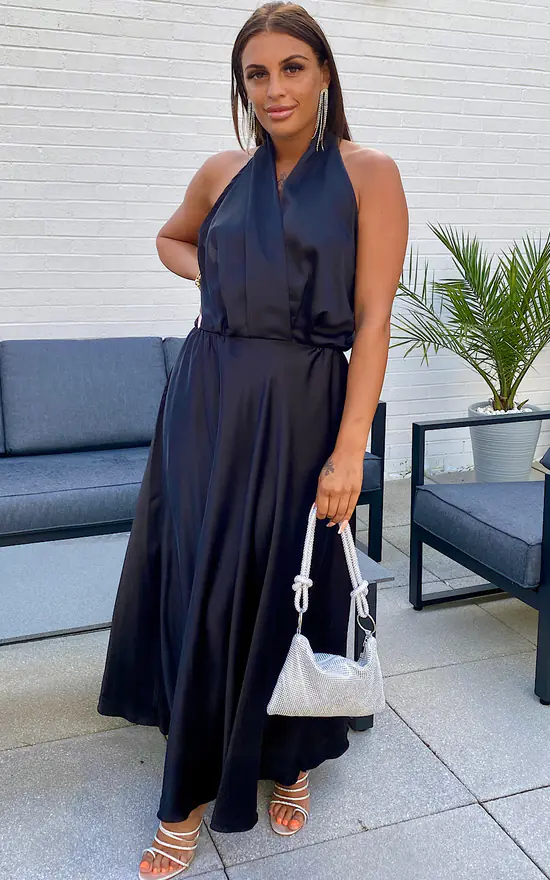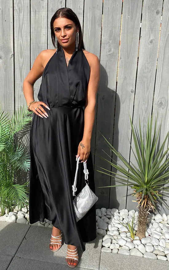 Brand new πŸ‘ The Fashion Bible Black Satin Backless Maxi πŸ‘— Dress πŸ˜‰