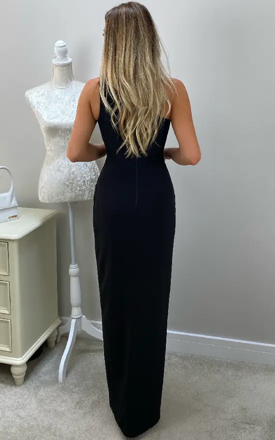 Youβll be turning heads in our bestselling Vesper Fliss one shoulder satin detail monochrome maxi dress. With a contrasting satin detail across the top of the dress and thigh high leg slit. Fliss features a centre back zip fastening and is made from our stretch crepe.